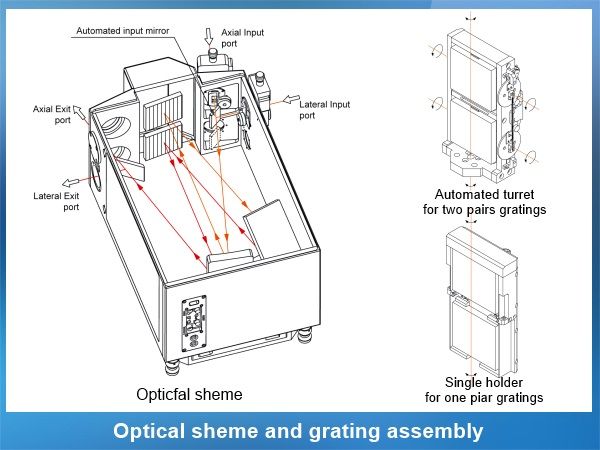 MSDD1000 series Monochromator-spectrograph is a double dispersion monochromator-spectrograph with the effective focal length of 1 m. Double scheme combines a high spectral resolution which is peculiar to long-focus instruments, extremely low stray light being the advantage of double schemes and small sizes of single monochromators-spectrographs. MSDD1000 series Monochromator-spectrograph is a completely automated spectral instrument with the effective focal length of 1000 mm (2×500 mm) and F\number of 1/5.9, which is applicable as a monochromator or a spectrograph with a large flat field.
