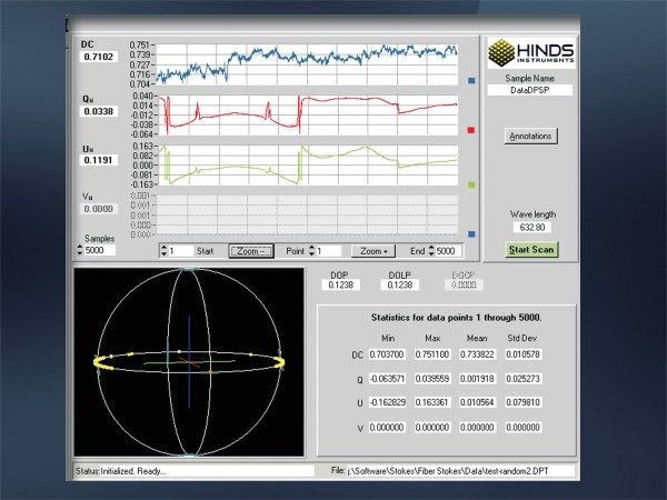 Hinds Instruments’ Stokes Polarimeter Systems offer unparalleled sensitivity for measuring the polarization state of a light beam or source. Using a robust, refined technology, our Dual PEM Stokes Polarimeters quantify all 4 normalized Stokes vectors with a single measurement and no moving parts. The excellent sensitivity, repeatability and straightforward operation of the Dual PEM Stokes Polarimeter platform have made this system invaluable to challenging applications in optical component characterization, astronomy, fiber optic research and manufacturing, and laser quality control.