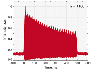 Measured 2.2 GHz non-pre-shaped bursts of 1100 pulses at 233 kHz burst repetition rate