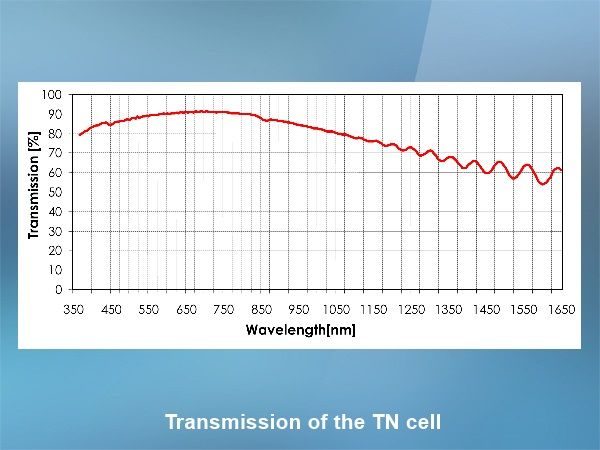 Liquid Crystal twisted nematic polarization rotator (TN cell) is very useful when one wants to rotate the orientation of a linear polarization by a fix amount of typically 45° or 90°. When light is traversing LC twisted nematic cell its polarization follows the rotation of the molecules.The liquid crystal nematic cells have therefore a large acceptance angle, function over a very large spectral range from VIS to NIR (if they are thick enough) and are less expensive. Optionally, by applying a voltage on the TN cell, the polarization rotation can be “switched off”. Also when placing a 90° twisted cell between crossed polarizers it can be used as a shutter.