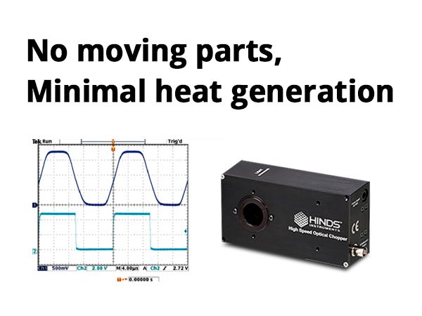 Hinds Instruments introduces a high speed optical chopper for precision chopping at 50 kHz with a 50% duty cycle. Based on photoelastic modulator technology, the Hinds chopper operates on the principle of resonance, requires low power to operate, has no moving parts and does not produce temperature changes. This system has an extinction ratio of 98% at 633 nm. Inside the enclosure are all the necessary electronics and optics. A BNC connector provides a reference signal to synchronize with the chopped signal. The chopper is optimized for single wavelength use. Small size, long life and “out of the box” operation make this system ideal for all applications. This is a proven technology with an extremely robust design and no wearing parts. The versatile Hinds Instruments optical chopper has a standard wavelength range from 200 -800 nm and can be used with most low- to medium-powered lasers.