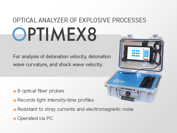 For analysis of detonation velocity, detonation wave curvature, and shock wave velocity. Multi-board OPTIMEX8.