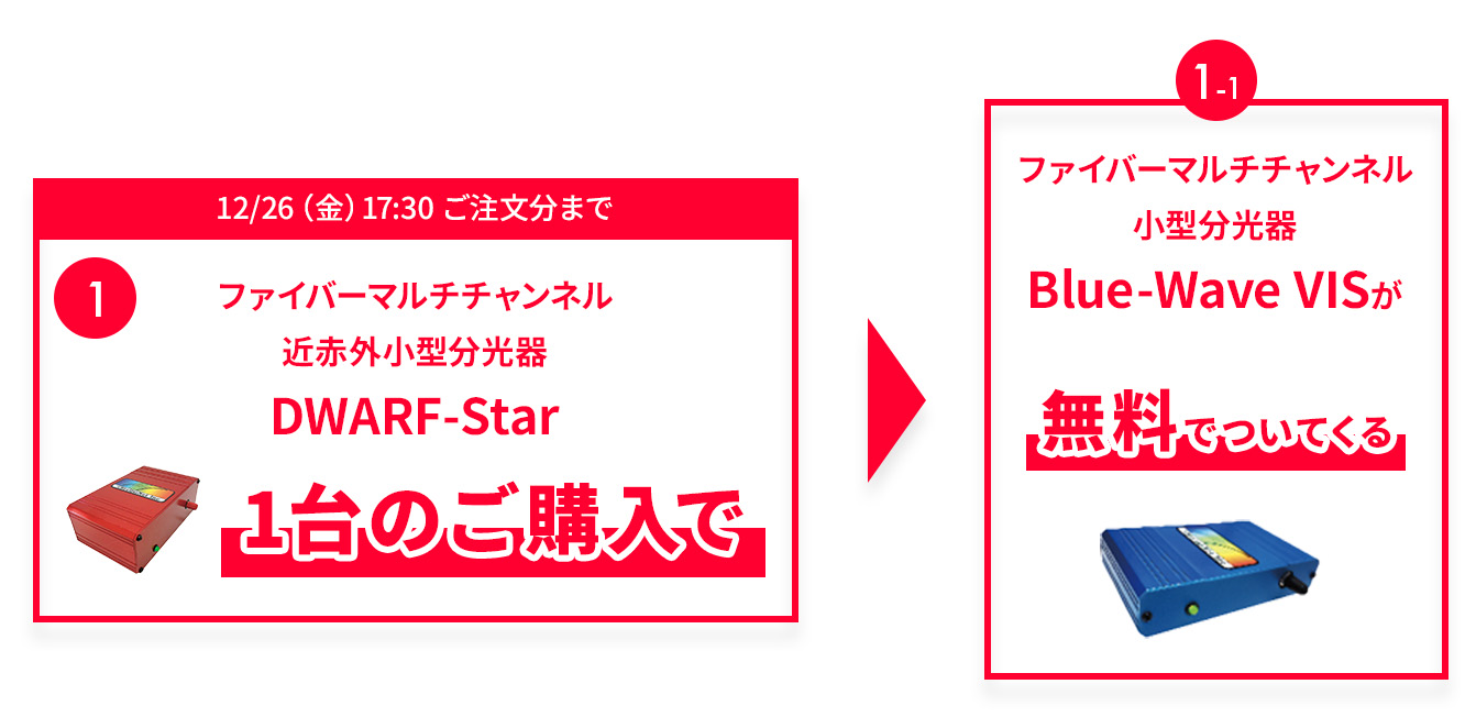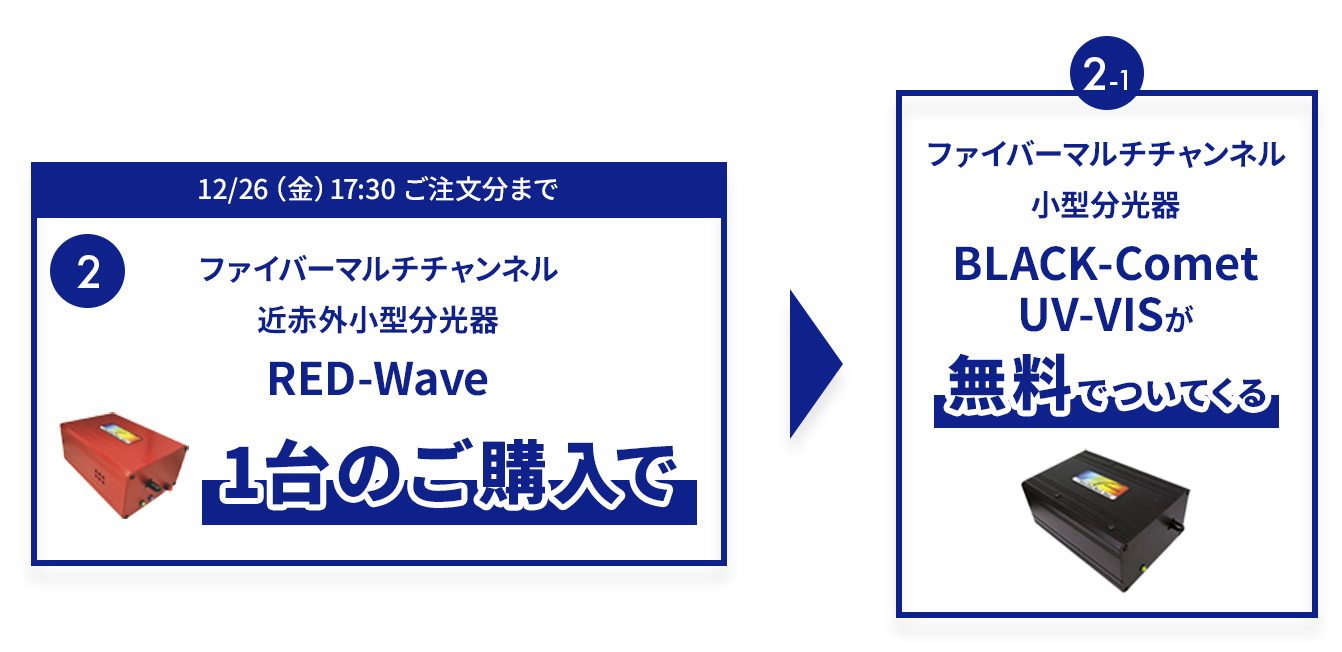 平素は格別のお引き立てを賜り、厚く御礼申し上げます。 本年も、Stellarnet Inc.社製「ファイバーマルチチャンネル近赤外小型分光器」をご購入されると「ファイバーマルチチャンネル小型分光器」が一台無料でついてくる、歳末キャンペーンを実施いたします。