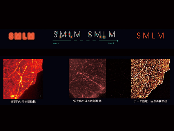 SMLMは、"Single-Molecule Localization Microscopy"の単語の頭文字をとった言葉で、単分子局在顕微鏡法を意味します。