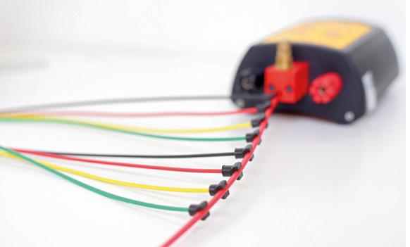 OPTIMEX 8は多⽬的な携帯型計測装置であり、8本の光ファイバープローブを⽤いて光信号強度を連続的に記録しながら、爆轟速度やその他パラメーターを測定するために設計されています。