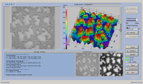 5 mm×5 mmの範囲を一度に短時間(約10秒)かつ数 µmの分解能で測定できます。また本装置には、CCDカメラが内蔵されており、CCD画像との比較も行えます。